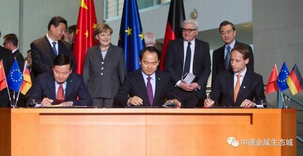 在國家主席習近平與德國總理默克爾共同見證下,揭陽市中德金屬集團、廣東省廣晟資產(chǎn)經(jīng)營有限公司、德國歐綠保集團三方共建的“中德資源再生基地”項目成功簽約,正式落戶中德金屬生態(tài)城,并于2014年5月31日舉行了中德葉綠寶資源再生基地奠基儀式。