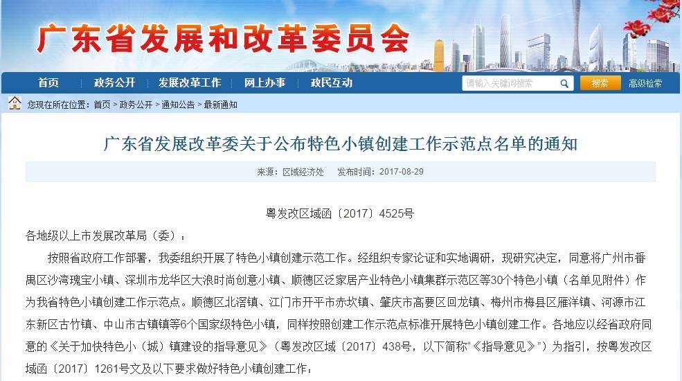 根據(jù)《廣東省發(fā)展改革委關(guān)于公布特色小鎮(zhèn)創(chuàng)建工作示范點(diǎn)名單的通知》(以下簡(jiǎn)稱:通知),示范點(diǎn)要按照集產(chǎn)業(yè)鏈、創(chuàng)新鏈、服務(wù)鏈、人才鏈、資金鏈于一體的理念,培育新產(chǎn)業(yè)、新業(yè)態(tài)、新模式,立足資源稟賦、區(qū)位環(huán)境、歷史文化、產(chǎn)業(yè)集聚等特色,做精做強(qiáng)特色小鎮(zhèn)主導(dǎo)產(chǎn)業(yè),促進(jìn)產(chǎn)業(yè)跨界融合發(fā)展、集聚發(fā)展。著力構(gòu)建特色小鎮(zhèn)高端要素集聚平臺(tái),支持特色小鎮(zhèn)建設(shè)孵化器、加速器、工業(yè)設(shè)計(jì)中心、專門化總部基地等新型載體,促進(jìn)產(chǎn)業(yè)發(fā)展向微笑曲線兩端延伸,努力將特色小鎮(zhèn)發(fā)展成為區(qū)域創(chuàng)新高地、全省現(xiàn)代產(chǎn)業(yè)體系的重要組成部分。