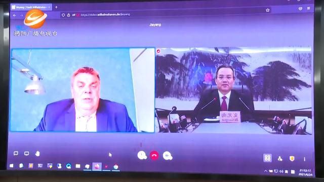 6月24日晚,揭陽市市長支光南與德國下薩克森州威廉港市市長卡斯騰•菲斯特舉行視頻會議,就兩市友好交流和務(wù)實合作深入交換意見。市有關(guān)部門及中國中小企業(yè)中心(德國)相關(guān)負責人參加會議。