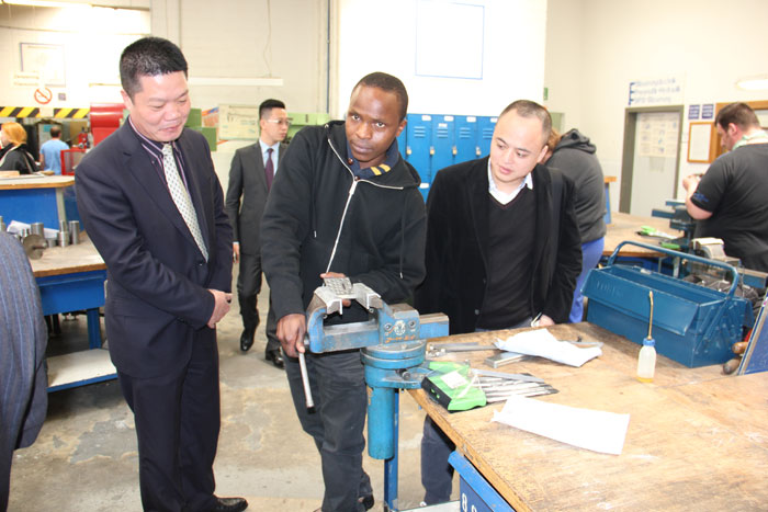 代表團(tuán)在沙爾平先生的介紹下,深入考察了德國的職業(yè)教育體系,先后參觀了黑森-圖林根大區(qū)工會(huì)下屬的職業(yè)技術(shù)學(xué)校海因里希-克萊因爾學(xué)校,實(shí)地參觀了德國職業(yè)技術(shù)學(xué)校教學(xué)現(xiàn)場。德國學(xué)生經(jīng)過培訓(xùn)后達(dá)到的高超技藝,給代表團(tuán)留下了深刻印象,并立即與相關(guān)部門達(dá)成了職業(yè)教育培訓(xùn)合作意向,為揭陽創(chuàng)辦產(chǎn)業(yè)技術(shù)應(yīng)用大學(xué)積累了寶貴的合作資源。