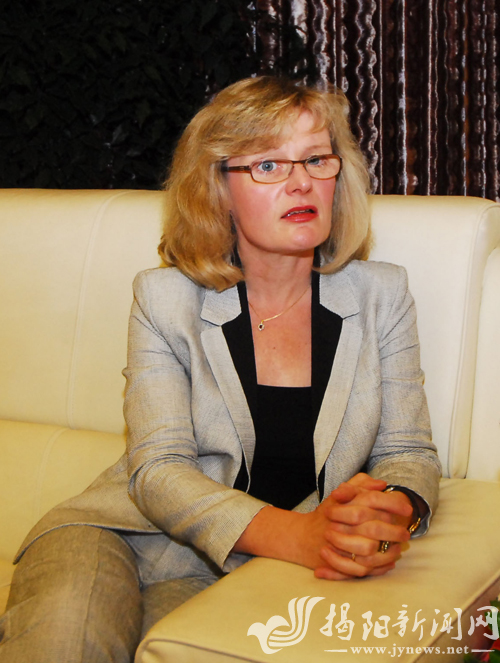 近日,德國聯(lián)邦經(jīng)濟和技術(shù)部東亞經(jīng)貿(mào)處處長Gerlind Heckmann女士來揭訪問。她在接受記者采訪時表示,自己深深為中德金屬生態(tài)城的魅力所折服(見圖。盧澤鴻 攝)。