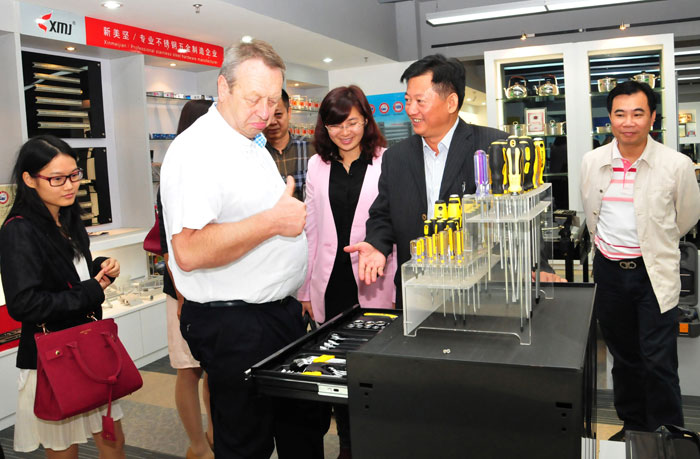 海姆•邁爾先生參觀聯(lián)合會(huì)展廳,對(duì)展廳五金產(chǎn)品予以充分肯定