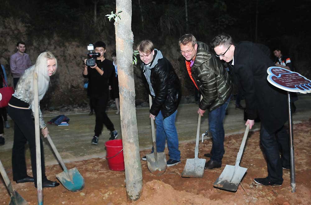 來(lái)華交流班與揭陽(yáng)有關(guān)領(lǐng)導(dǎo)在萬(wàn)畝森林公園共植友誼之樹(shù)