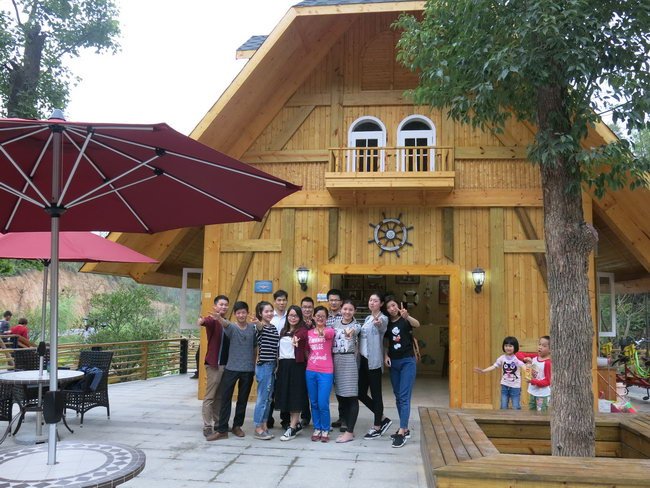 “壽星們”與活動負(fù)責(zé)人在特色布谷屋前合影,定格這歡樂一刻