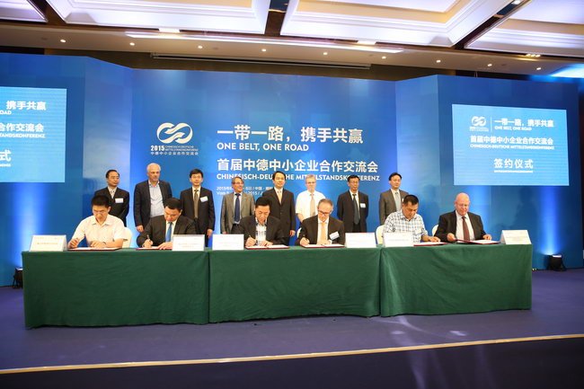 首屆中德中小企業(yè)合作交流會取得豐碩成果。圖為6日下午的合作項目簽約場面。